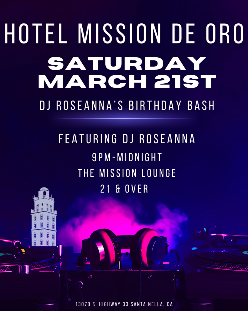 If you are looking for a fun venue with a beautiful ambiance and great music, join us Saturday night as DJ Balboa will be at The Mission Lounge playing hits from throughout the decades.
